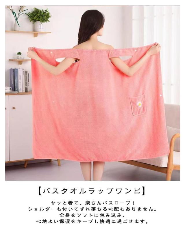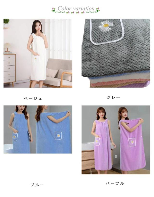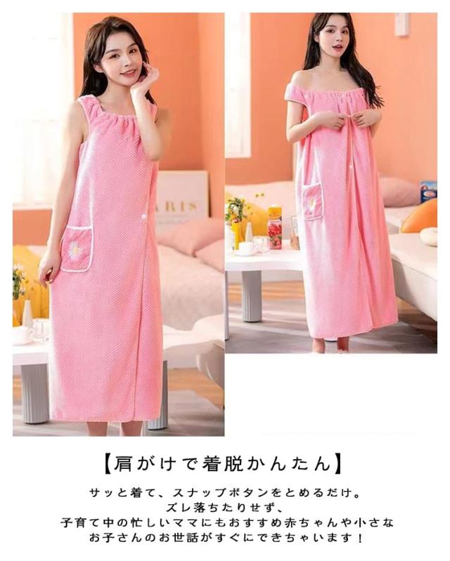 | 100×130cm 高吸水 速乾性抜群 【優しい肌触り】マイクロファイバー素材を採用され、着心地がいい、柔らかい肌触りを持つラップタオルです。すべすべの肌触り、超低摩擦で肌を刺激せず、お風呂上がりの身体を優しく包み込みます。 【バスタオルラップワンピ】サッと着て、楽ちんバスローブ!ショルダーも付いてずれ落ちる心配もありません。全身をソフトに包み込み、心地よい保湿をキープし快適に過ごせます。 【肩がけで着脱かんたん】サッと着て、スナップボタンをとめるだけ。ズレ落ちたりせず、子育て中の忙しいママにもおすすめ赤ちゃんや小さなお子さんのお世話がすぐにできちゃいます! 【様々なシーンで大活躍】 ワンピースタイプだから、ひと目が気になる部屋の移動にもご自宅だけでなくジムや温泉などのお風呂上りのパウダールームの利用時、マッサージしたいときにも便利です!軽くて速乾性もあるから持ち運びも楽ちんです | |