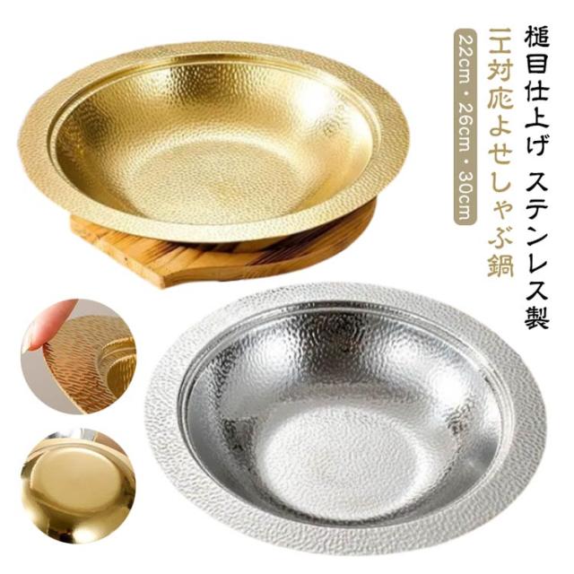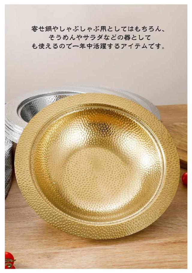 ステンレス しゃぶ鍋 26cm 槌目 受け皿 寄せ鍋 そうめん鉢 IH対応 寄せ鍋 鍋 なべ 皿 食器 卓上鍋 しゃぶしゃぶ鍋 サラダボウル 麺鉢 うどん鉢 28cm そうめん うどん 冷麺 30cm 大皿 寄せしゃぶ鍋 寄せ鍋