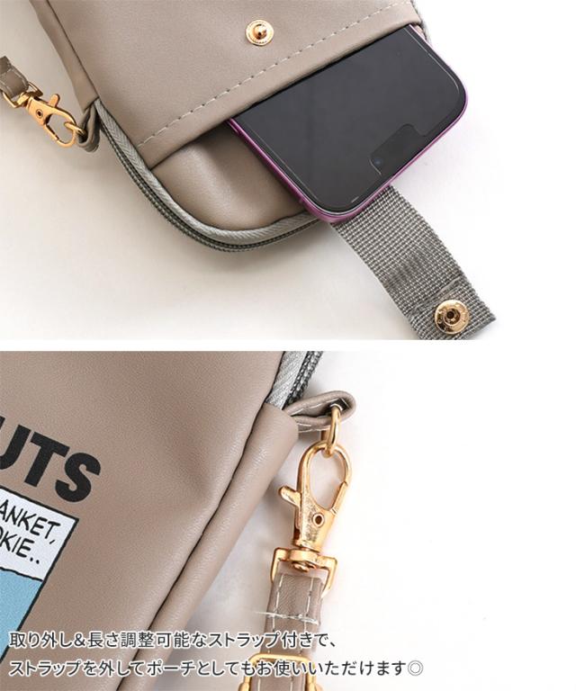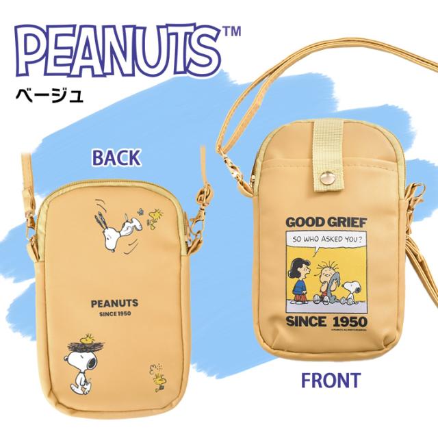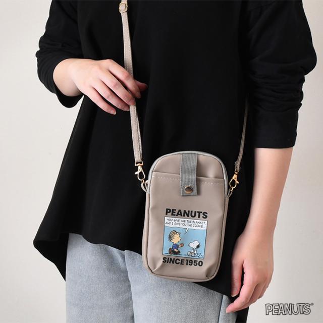 スヌーピーのキャラクターがデザインされた可愛いスマホショルダーバッグ!