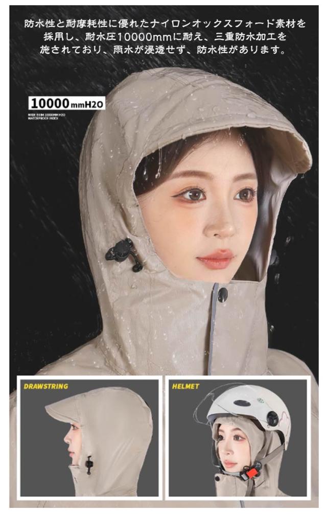 | M-2XL!自転車、リュックに対応可能な男女兼用のレインコート。膝下までカバーするロング丈、体がしっかり覆われ、レインブーツを履けば足元まで濡れない、全身を雨から守ることができます。 防水性と耐摩耗性に優れたナイロンオックスフォード素材を採用し、耐水圧10000mmに耐え、三重防水加工を施されており、雨水が浸透せず、防水性があります。 通勤・通学・自転車・バイクなどの日常使いはもちろん、キャンプや釣り、ハイキングなどのアウトドアまで幅広くご使用いただけます。梅雨シーズンの豪雨・台風対策などでも活躍間違いなしです!雨の日の自転車で、機能もおしゃれも妥協したくない人のための、高い機能性とデザイン性を両立させたレインコートです。 | |