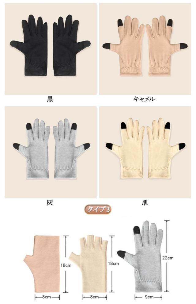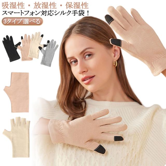| 吸湿性 ・ 放湿性 ・ 保湿性 スマートフォン 対応シルク手袋! 3タイプ選べる! 保湿 や 保温効果 によりワンランク上の 美肌作り を サポート します。 手袋 をしたまま スマホ 操作 ができます。 クリーム を 塗って から 着用 するとさらに 効果アップ! | |