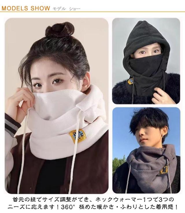 防寒 ネックカバー あったか 3way 帽子 メンズ 厚手 ネックガード フリース 男女兼用 裏起毛 冬 フェイスカバー ユニセックス フード ネックウォーマー フェイスマスク 目出し帽 あったか 極暖 極暖 防風 小顔効果 ネックウォーマー