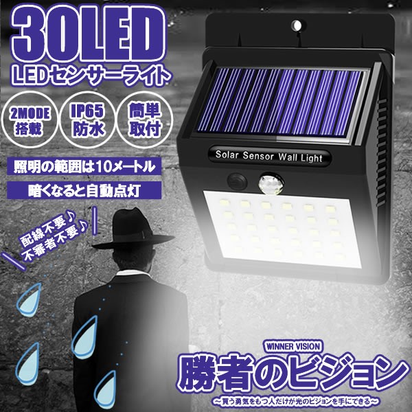 勝者のビジョンライト 爆光 30個 LED 人感 センサーライト 屋外 ソーラー 太陽光 3モード 自動点灯 防水 防犯ライト 防災 配線不要 SYOUVISION