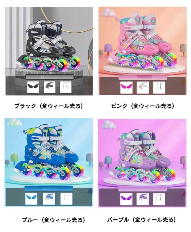 インラインスケート 子供用 中学生 ジュニア 大人 ローラースケート インラインシューズ サイズ調整可能 小学校 誕生日 ローラーブレード クリスマス 全ウィールが光る お子様用 成人 光る輪 全ウィールが光る 大人用 タイヤ光る 女の子 男の子