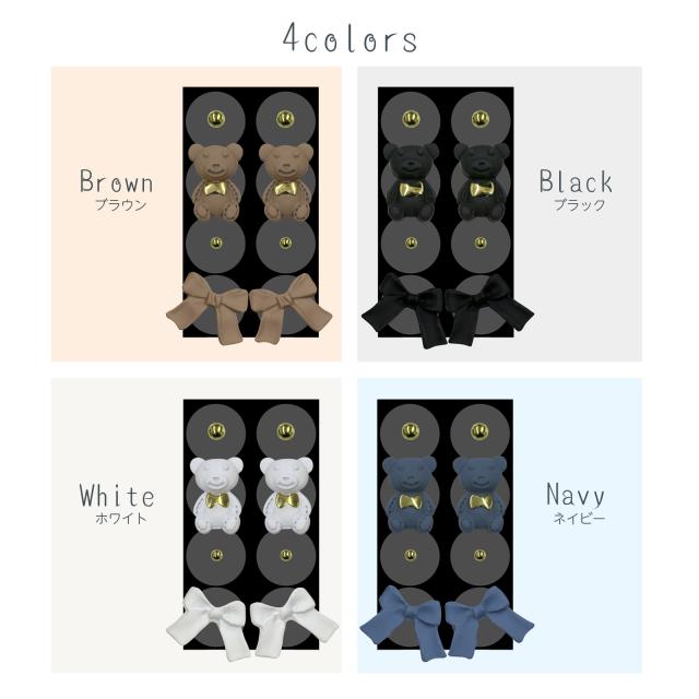 【商品説明】やさしい表情のくまモチーフに、可愛らしいリボンをあしらった耳つぼジュエリー。リボンがアクセントになり、甘すぎず上品な可愛さをプラス。普段使いはもちろん、プレゼントや特別なお出かけにもぴったりのデザインです。