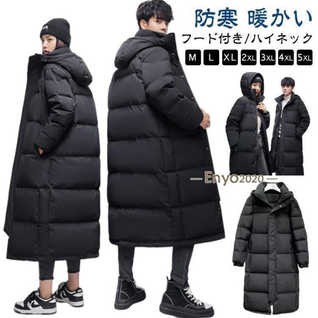 着痩せ ロングコート 中綿コート ベンチコート メンズ 大きいサイズ アウター 保温 ダウンジャケット ロング丈 フード付き/ハイネック 厚手 ブルゾ