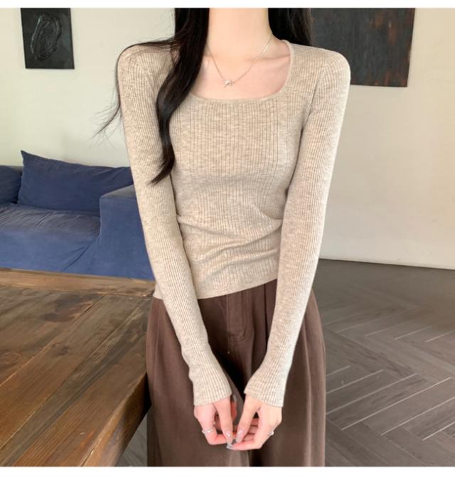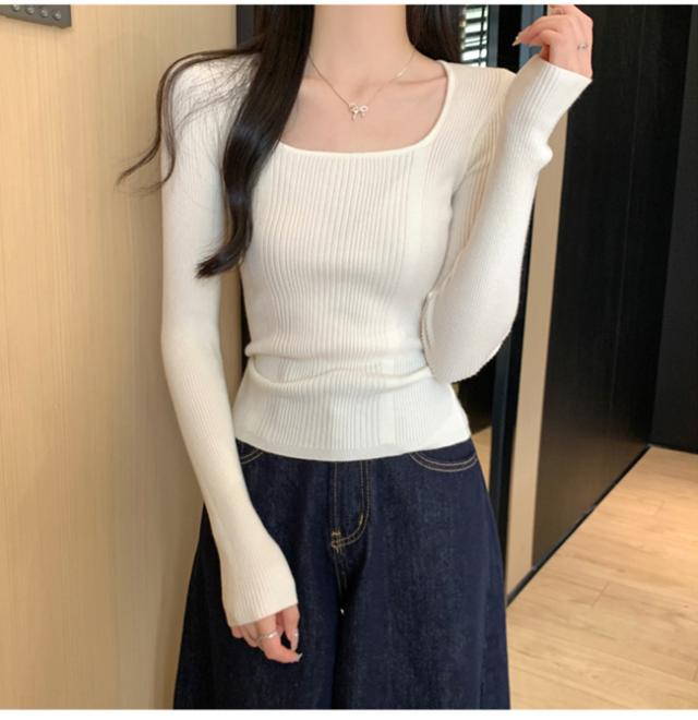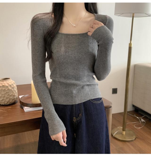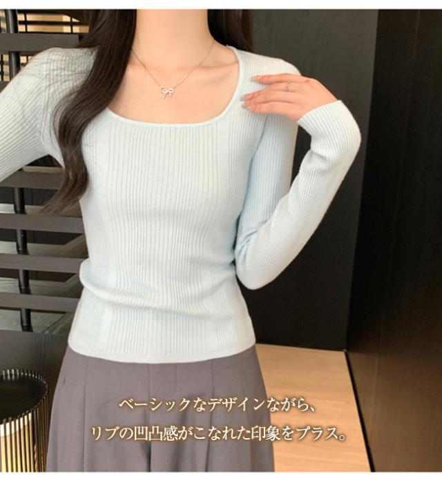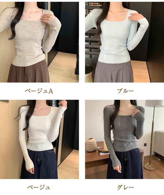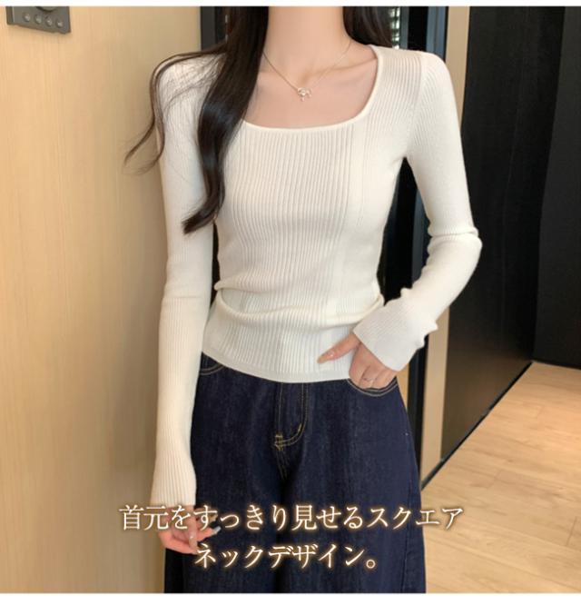 【クーポン配布中!】カットソー トップス ニット レディース 長袖 スクエアネック リブ 着痩せ 美しいシルエット 抜け感 キレイめ オフィス かわいい 20代 30代 40代 50代