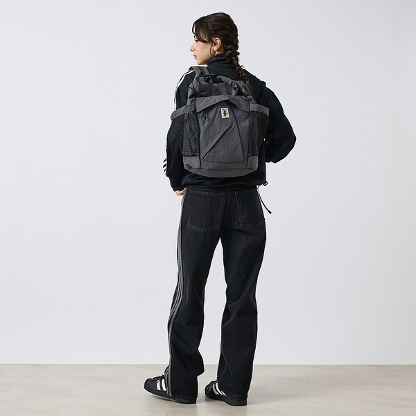 紙のような質感が特徴の塩縮CODURA100Dの生地を採用したバックパック。