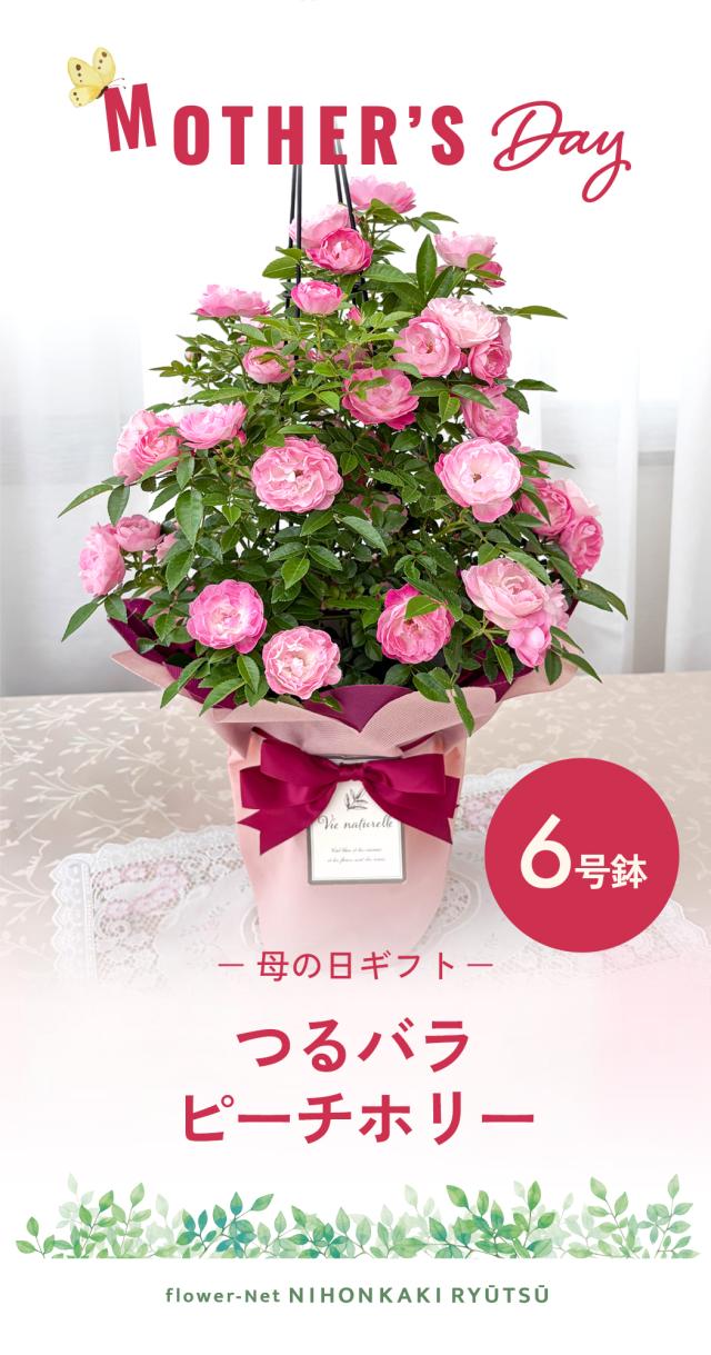 \ 早割 / 母の日 プレゼント バラ ピーチホリー タワー 6号鉢 送料無料 母の日ギフト 花 鉢植え つるバラ 日本花キ流通