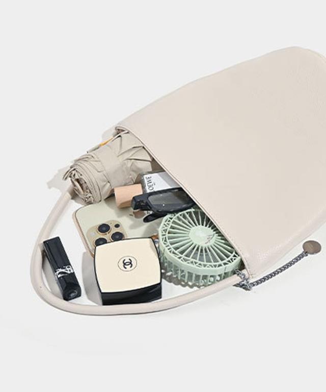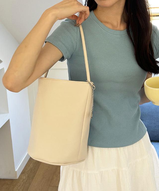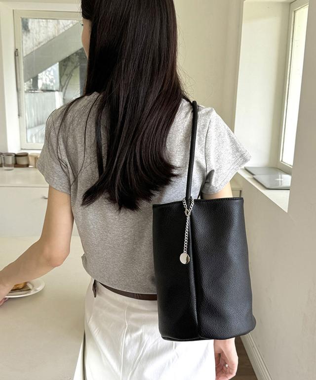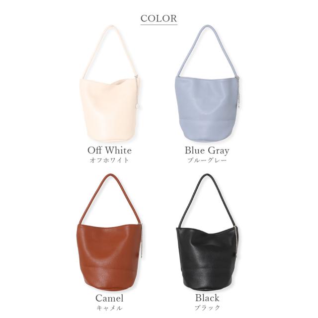しっとりソフトなシュリンクPUレザーにチェーンチャームを取り付けた上品でおしゃれなデザインのハンドバッグ。