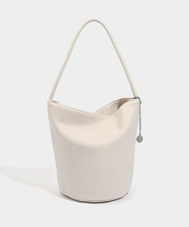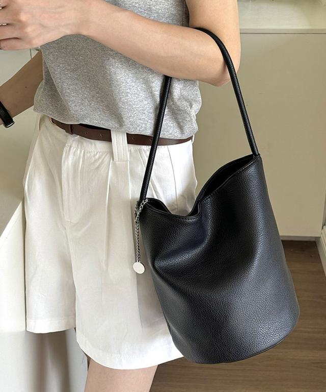 PUレザーライクプレーンバケツバッグ/ハンドバッグ/旅行バッグ。