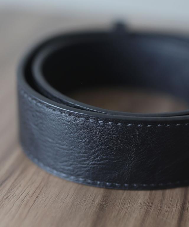 オンオフ兼用でキレイめにもカジュアルにも合わせやすいブラックベルトです。