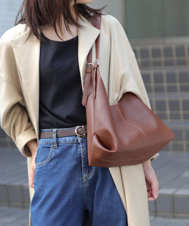【ポーチ付!高見えするシュリンクPUバッグ/ハンドバッグ/肩掛けバッグ】