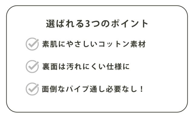 パイプ通しが不要のオリジナル製法で付け外しカンタン。装着時のイライラが解消され、時短にもなります。