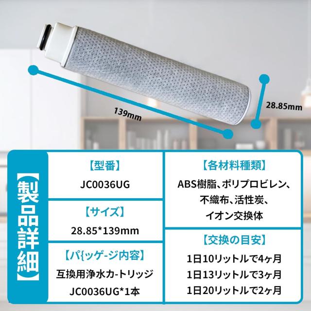 JC0032UG 高除去性能型 JC0036UG jc0036ug 交換用浄水カートリッジ JC0032DK、JC0032CH 交換用浄水 浄水カートリッジ 交換用 一体型浄水栓 取替用カートリッジ 浄水器