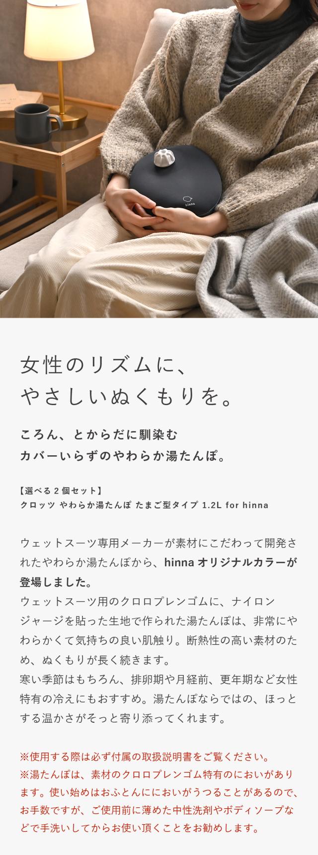 【選べる2個セット】クロッツ hinna限定カラー【正規品】【1年間保証書付】やわらか湯たんぽ たまご型タイプ 1.2L for hinna 日本製 専用ネジ付きロート付 カバー不要 ウェットスーツ素材 お湯 温かい 冷え 防寒 ギフト プレゼント 母の日 敬老の日