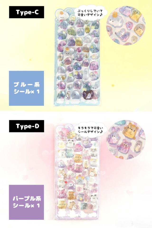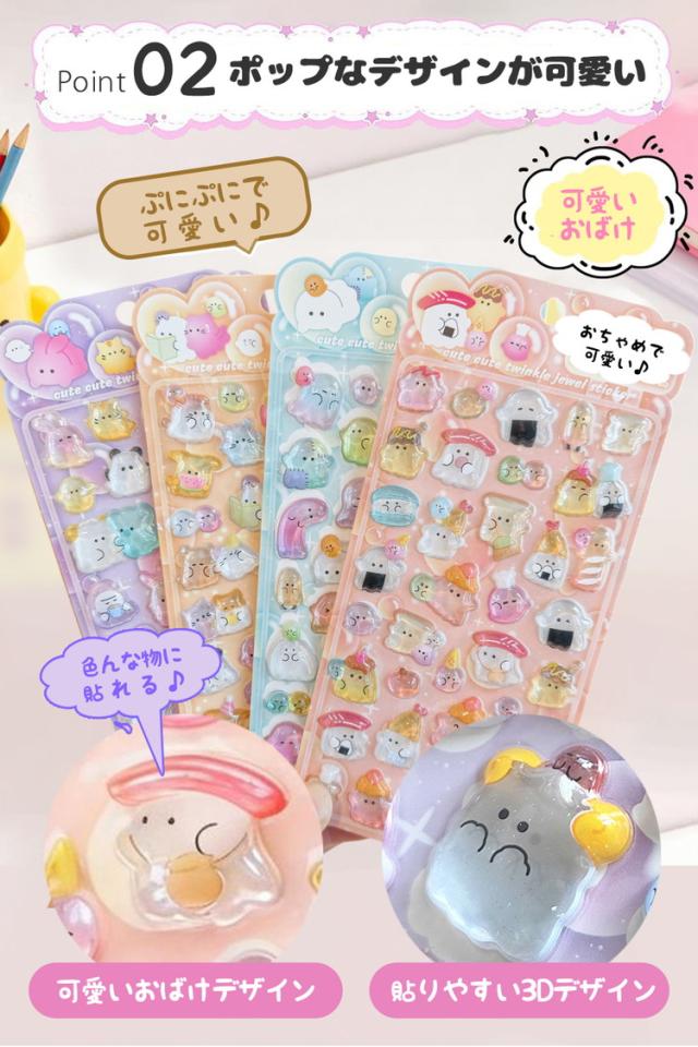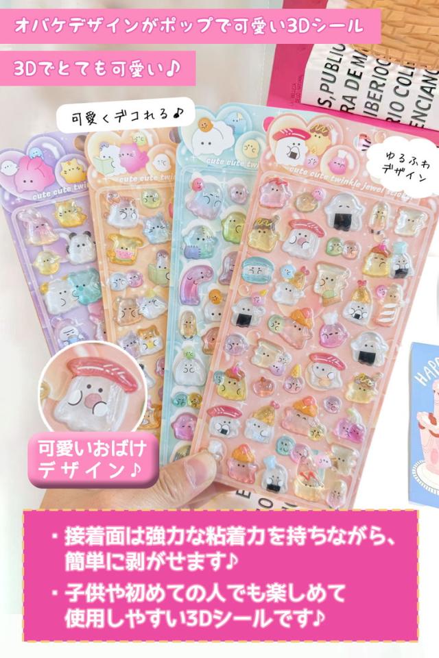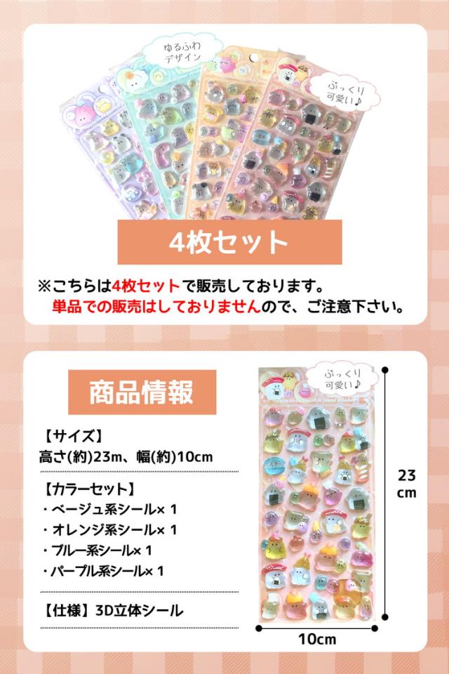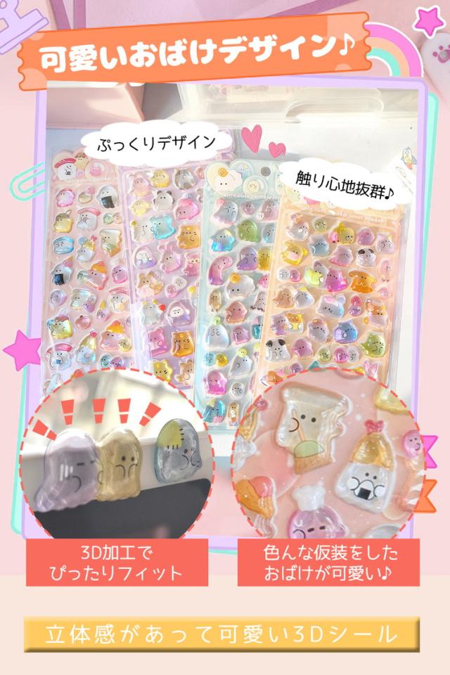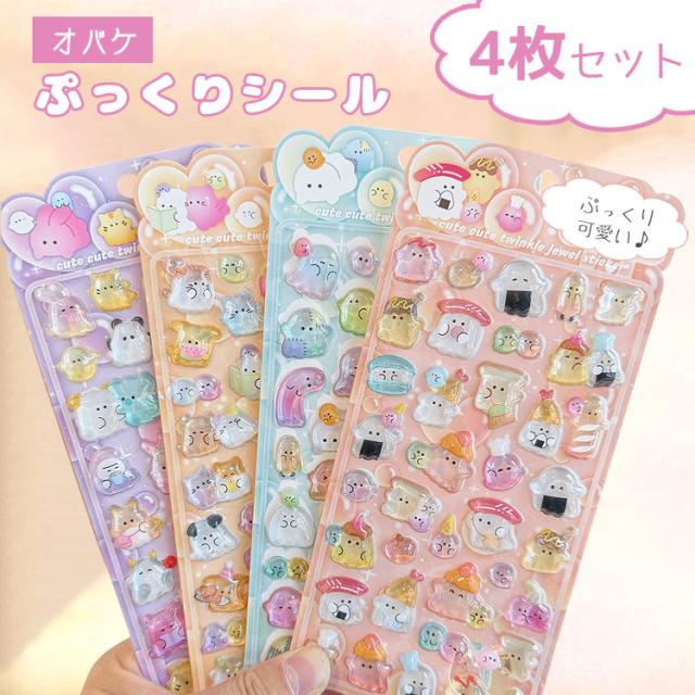 シール ぷっくり 【4枚セット】おばけ おばけシール ぷっくりシール シール帳 ぷにぷに おはじきシール おしりシール 女の子 可愛い アニマル 動物 マシュマロシール 犬 猫 うさぎ 熊 ひよこ 3Dシール 立体シール