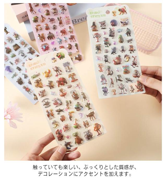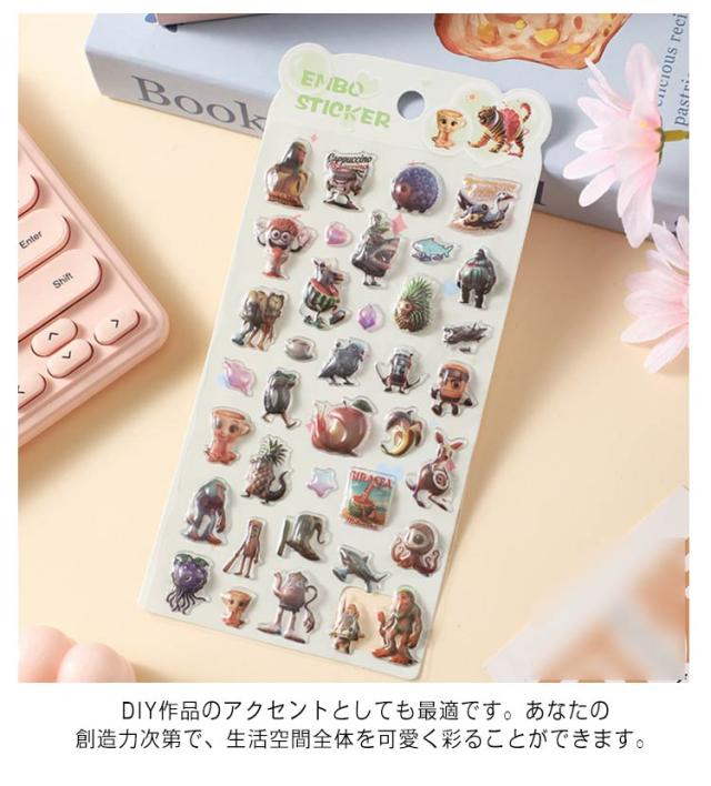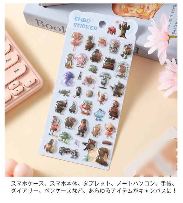 | 人気キャラクターの可愛いデザイン:話題の「トゥントゥントゥンサフール」と「ブレインロット」が勢揃い! 10枚セット トレンドに敏感な方に大人気のデザインで、貼るだけでお手持ちのスマホや手帳が、一瞬で世界に一つのオリジナルアイテムに変身します。 毎日使う物が楽しくなる、お気に入りのキャラクターを見つけましょう。 特殊なエンボス加工で、キャラクターが立体的に飛び出します!光の角度で表情が変わる奥行き感が、普通のシールとは一味も二味も違う高級感を演出。 触っていても楽しい、ぷっくりとした質感が、デコレーションにアクセントを加えます。 スマホケース、スマホ本体、タブレット、ノートパソコン、手帳、ダイアリー、ペンケースなど、あらゆるアイテムがキャンバスに!DIY作品のアクセントとしても最適です。あなたの創造力次第で、生活空間全体を可愛く彩ることができます。 | |