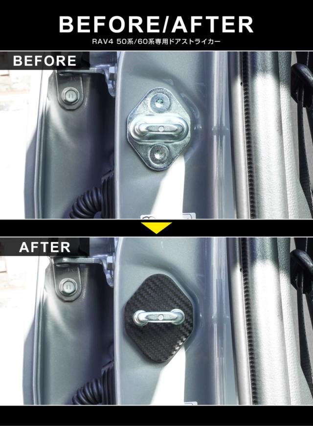 新型RAV4 50系 60系 ドアストライカーカバー 4P カーボン柄 内装 カスタム パーツ 保護 アクセサリー ドレスアップ キズ防止 汚れ防止【メール便発送】