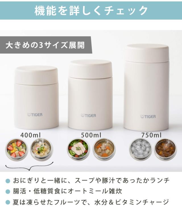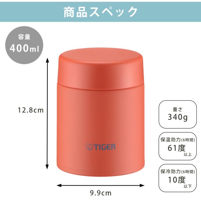 タイガー フードジャー 400ml 真空断熱 ( TIGER スープジャー スープボトル ランチジャー 保温 保冷 食洗機対応 パッキン一体 食洗機OK スープポット スープウォーマー スープマグ弁当箱 スープマグ スープ お弁当箱 ステンレス製 )