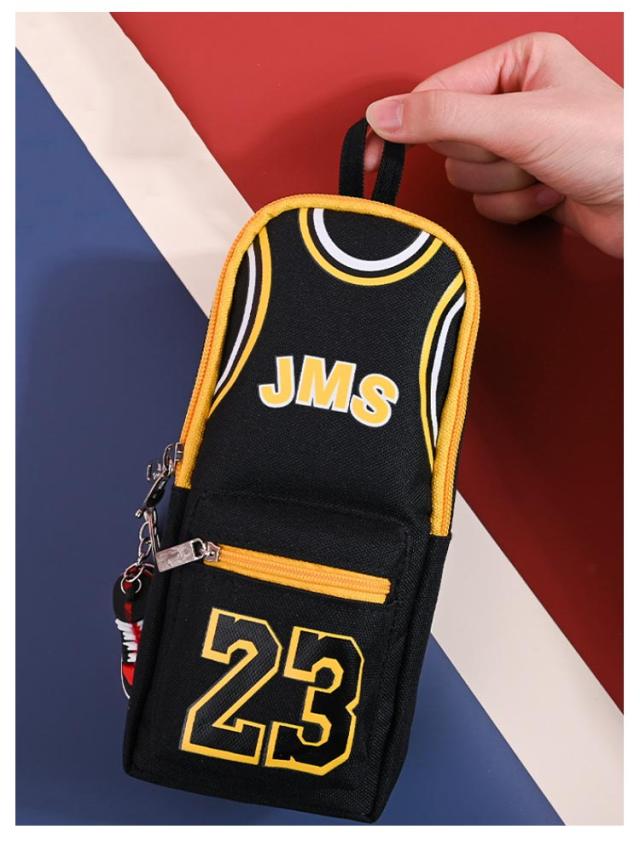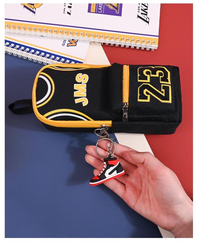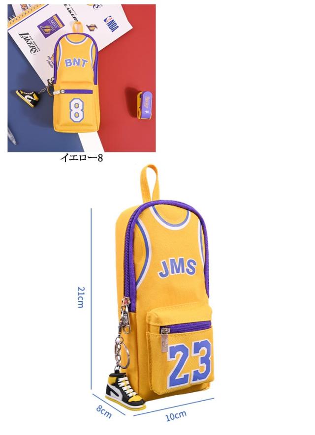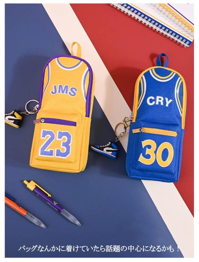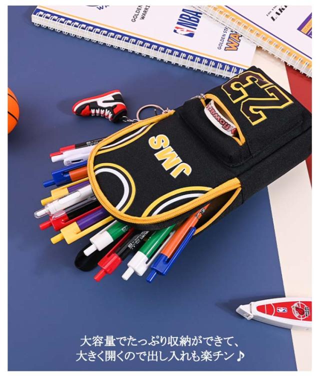ペンケース 大容量 ファスナー ペンポーチ バスケ ペンケース ポケット 男の子 筆箱 バスケ ふでばこ グッズ 文房具 キーホルダー付 キャンバス 縦型 文具 小物入れ ポーチ 持ち手 おしゃれ バスケットボール ユニフォーム チャーム付き