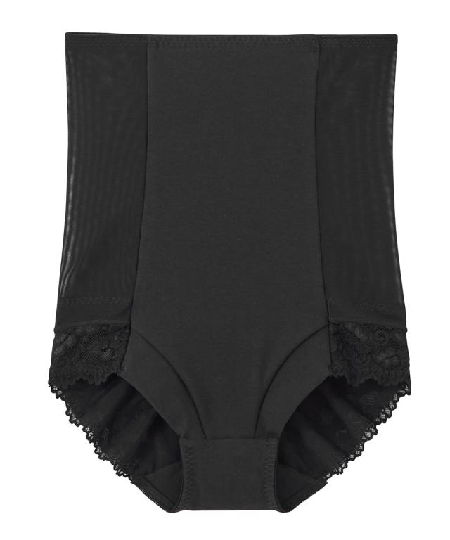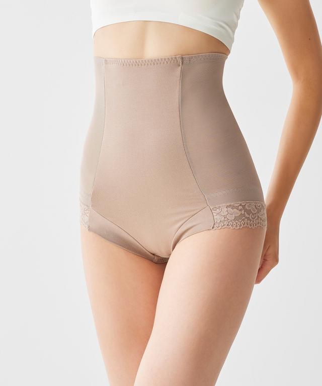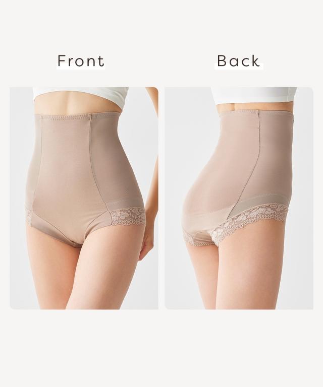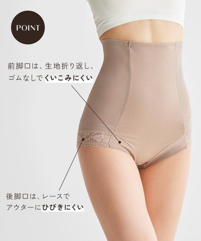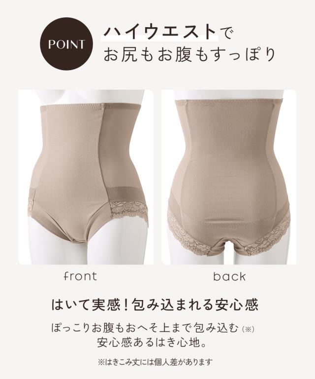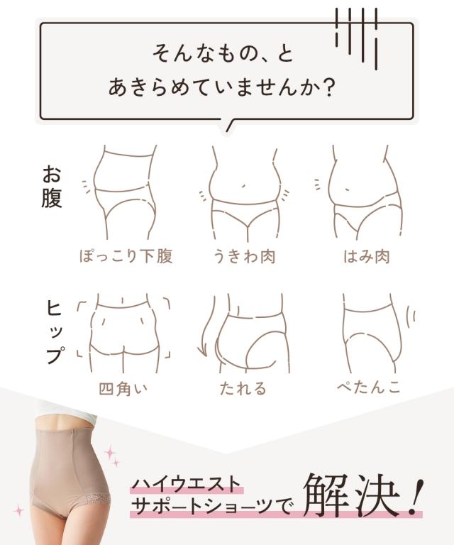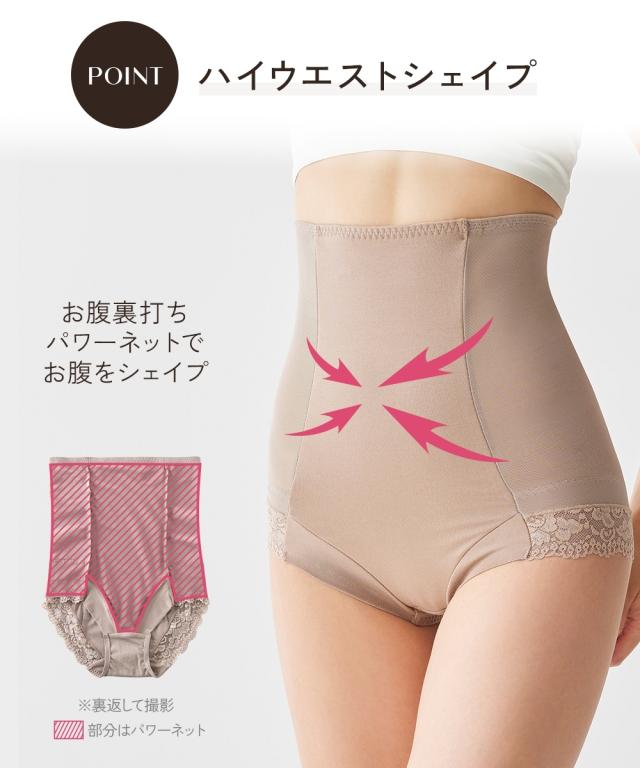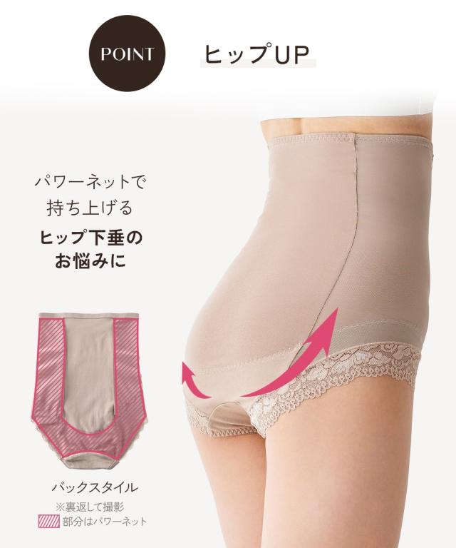 ●○●ワンサイズ細見え 脇すっきりハイウエストサポートショーツ●○● お腹おさえ、ヒップアップにおすすめ ハイウエストサポートショーツでお腹周りやヒップの悩みを解決! ◇◆◇おすすめポイント◇◆◇ ■ウエスト・お腹を引き締めワンサイズほっそり見え! ・ハイウエスト=サイドのパワーネット・お腹裏打ちでシェイプ ・ヒップ=裏打ちでヒップアップも可能 ■ウエスト ・ハイウエストシェイプ=お腹裏打ちパワーネットでお腹をシェイプします。 ・サイドのパワーネット=ハイウエスト丈のサイドパワーネットで脇すっきり ■ヒップ ・ヒップUP=パワーネットで持ち上げます。 ■脚口 ・前脚口は生地折り返し、ゴムなしでくいこみにくいです。 ・後脚口は、レースでアウターにひびきにくい仕様です。 ■綿95%のやさしい肌ざわり 後中心部は、綿95%でやさしい肌触り。 ■クロッチ裏は綿100%素材 快適にはいてほしいから、クロッチ裏は綿100%素材に。 お肌も喜ぶこだわりです。 ■チクチクしないプリントネーム 洗濯表示がプリントなので、チクチク感が気にならず快適 ■ウエストゴムの裏側は、肌に優しいパイルゴム。 ■ハイウエストでお尻もお腹もすっぽり はいて