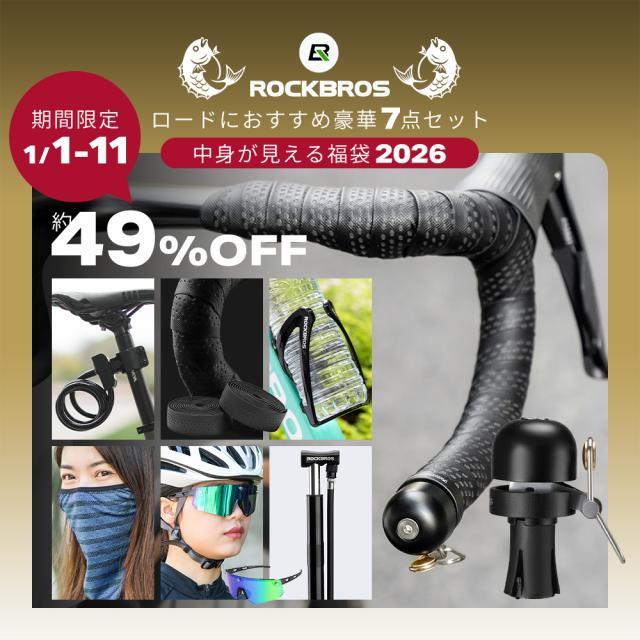 福袋 2026年 49%OFF 中身が見える福袋 ロードバイク おすすめ 7点セット 自転車 バーエンド ベル 鍵 ワイヤーロック バーテープ サングラス 空気入れ フェイスカバー お買い得セット サイクリング セット ロックブロス ROCKBROS