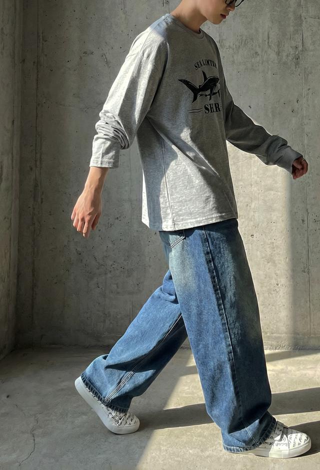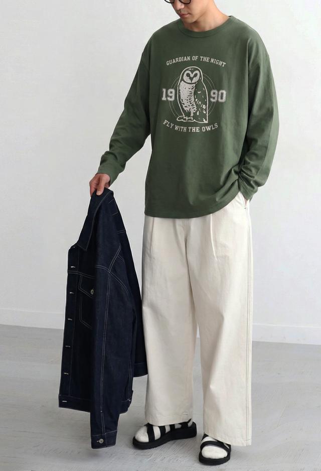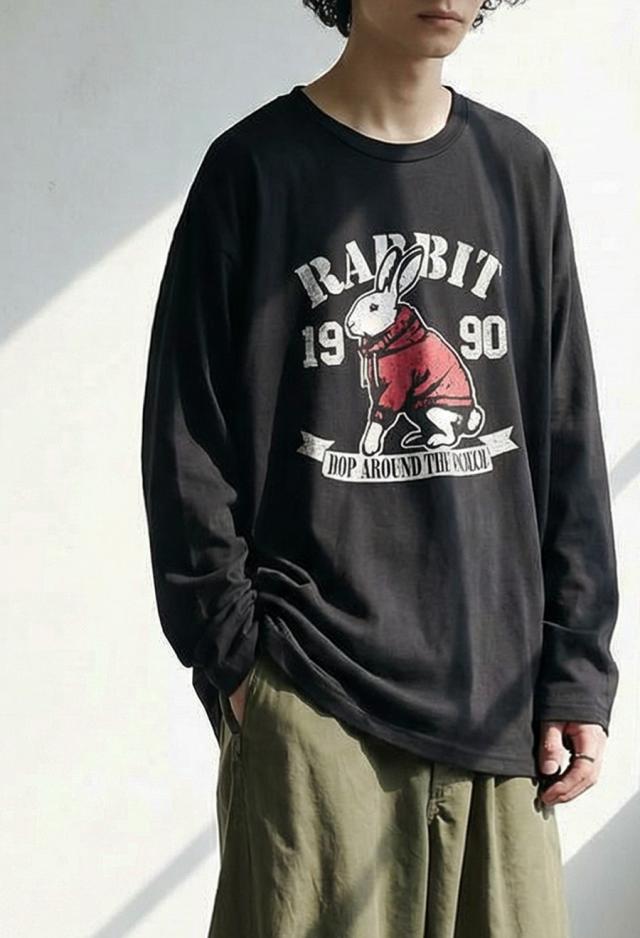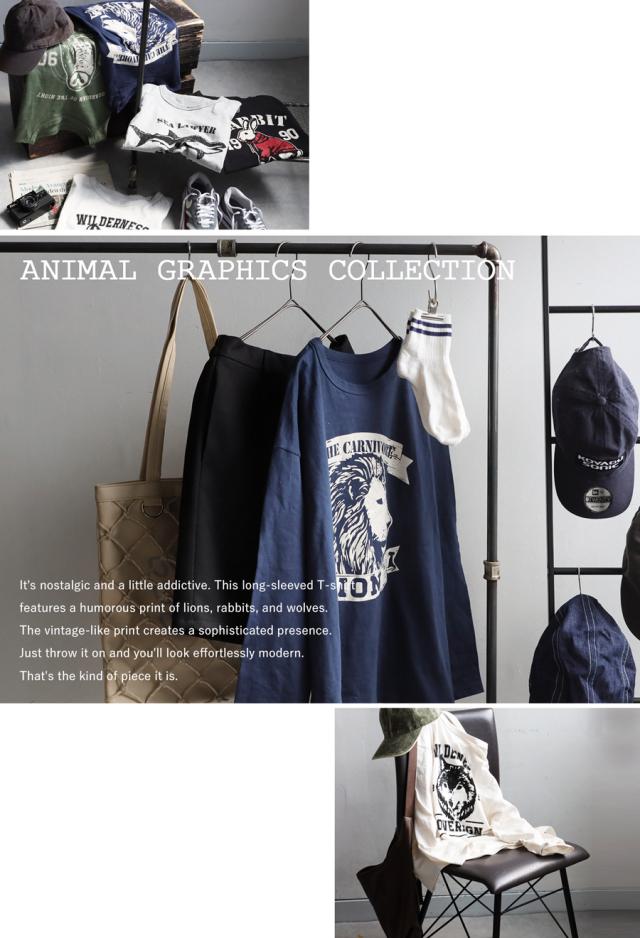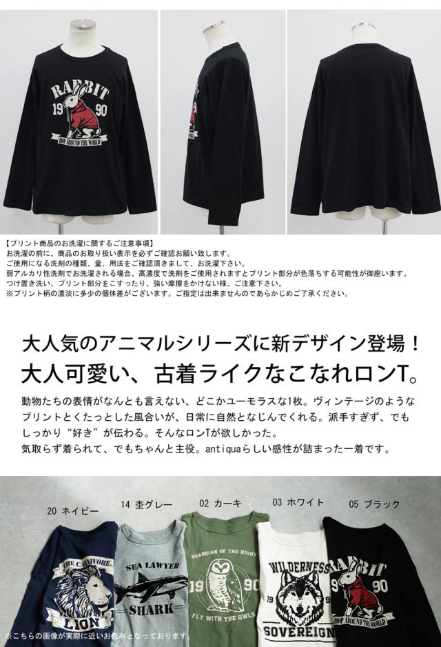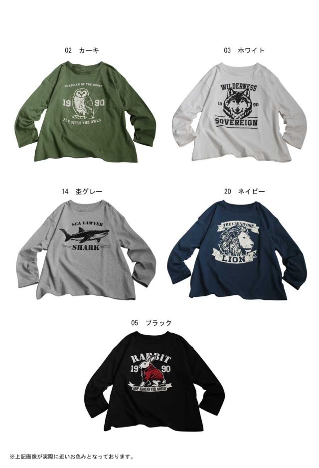 za-00300z トップス Tシャツ 長袖 アニマルプリント ロゴ コットン ビッグシルエット ゆったり 体型カバー ルーズ ワイド イージー リラックス カジュアル ナチュラル 重ね着 動物