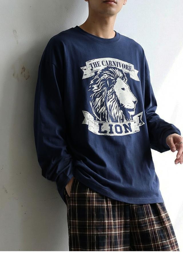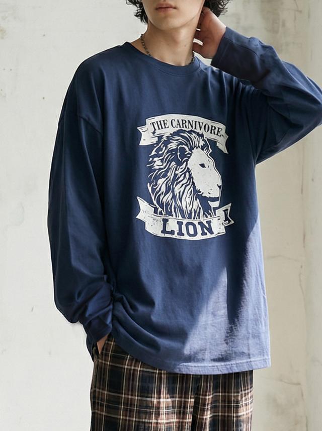 ロンT メンズ 長袖 綿100% アニマル柄 プリント・(80)メール便可 春新作