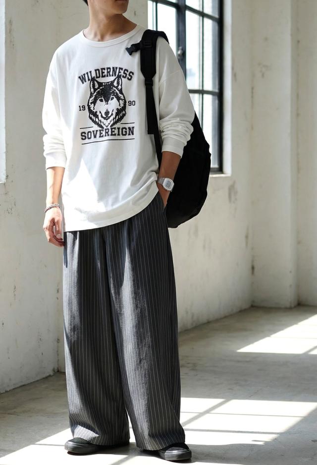 すっきりとしたクルーネック(ラウンドネック)に程よくゆとりのある形状で、ラフに着られる一枚に仕上げました。