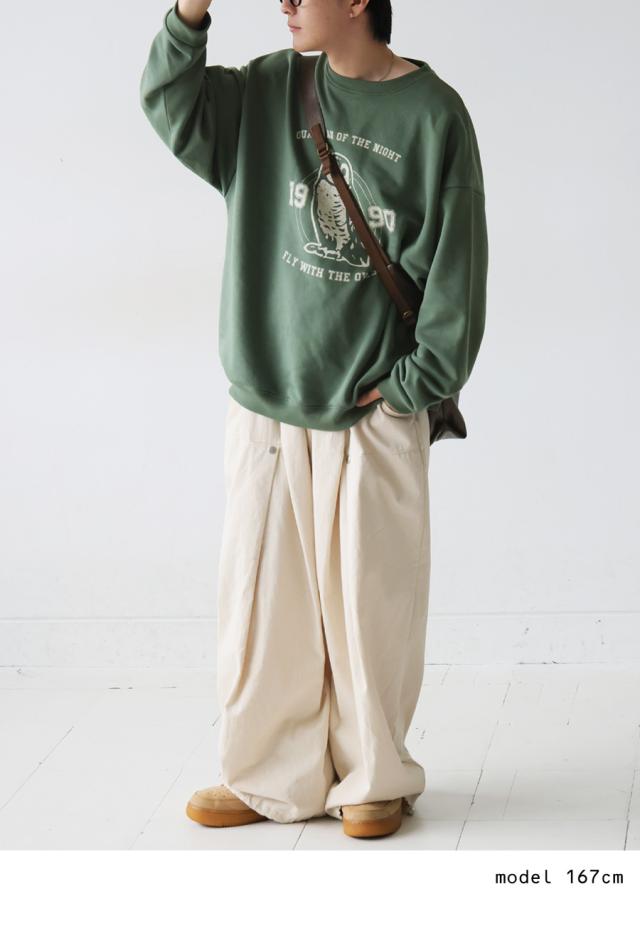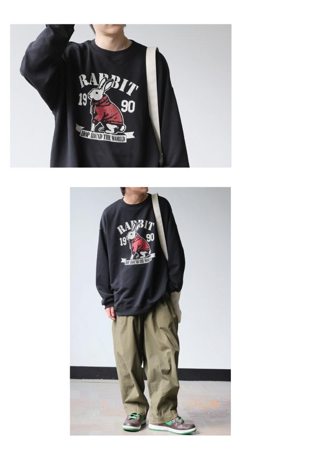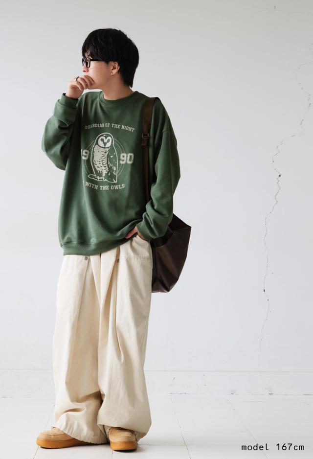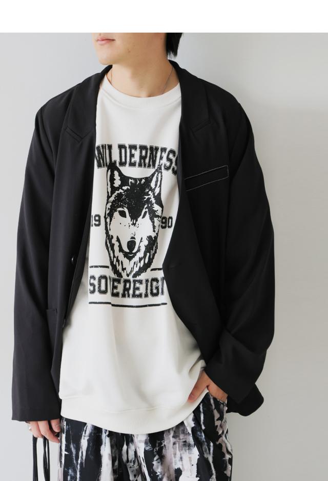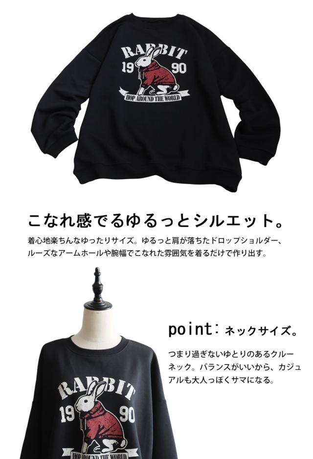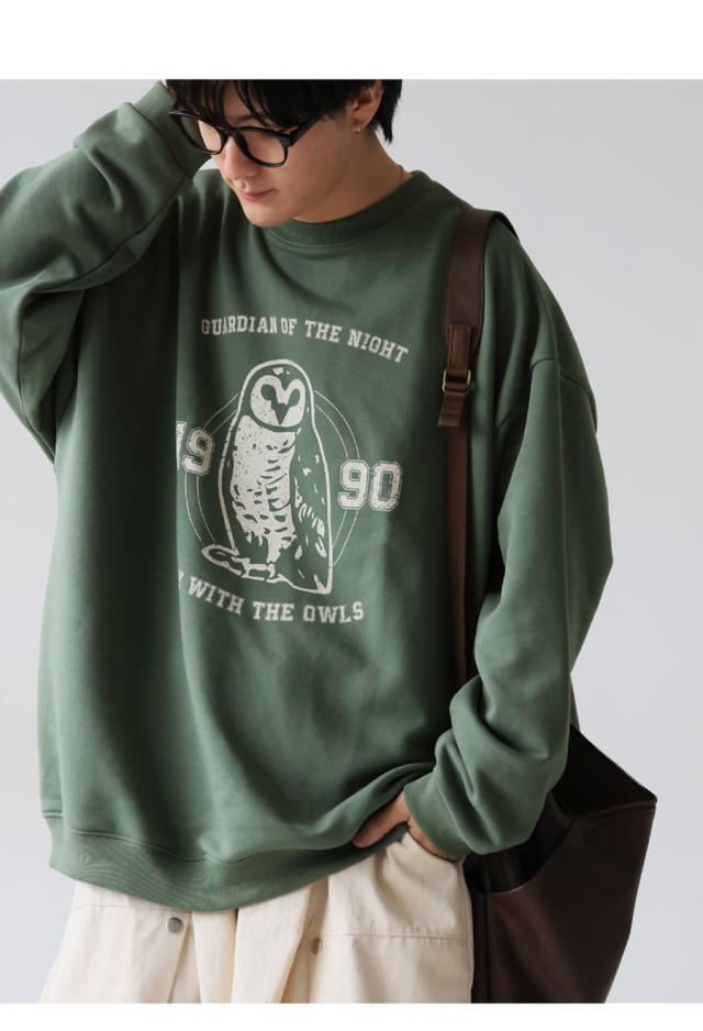 za-00301z トップス スウェット アニマル ロゴプリント クルーネック 長袖 ドロップショルダー ミドル丈 ワイド ルーズ 大きいサイズ ビッグシルエット カジュアル 古着風 ユニセックス