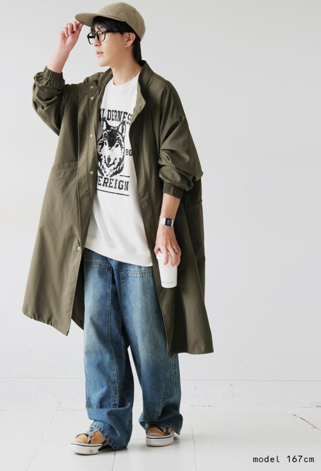 袖丈は手首まで届く長袖デザインで、ドロップショルダーのゆとりある形状がこなれた印象を与えます。