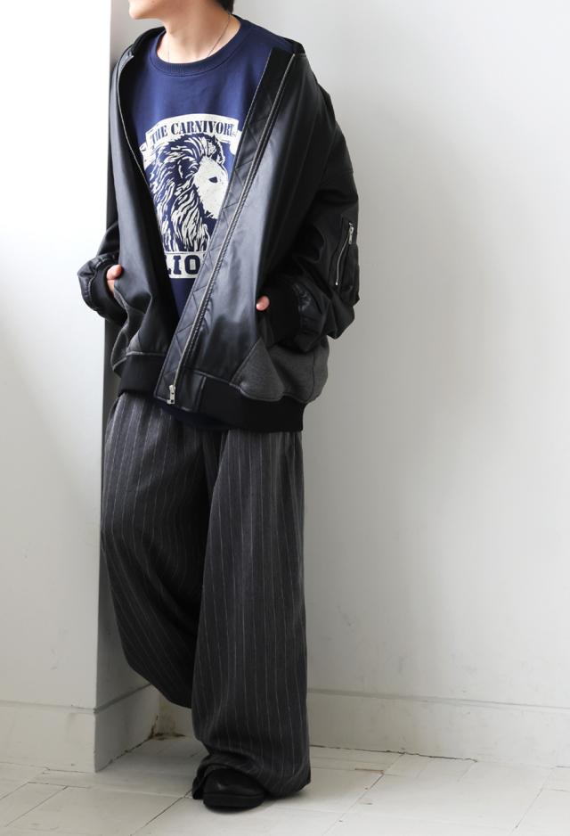 フロントには存在感のあるアニマル柄を施し、無地ベースとのコントラストがスタイリングのアクセントに。