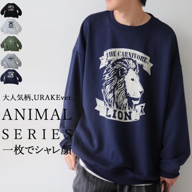 「絶対使える、春の即戦力」1,000円OFF対象! 綿100% アニマルロゴ 裏毛 トレーナー メンズ 送料無料・メール便不可 春新作