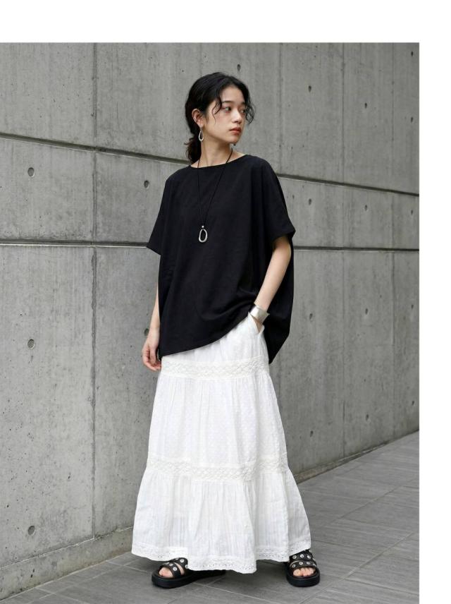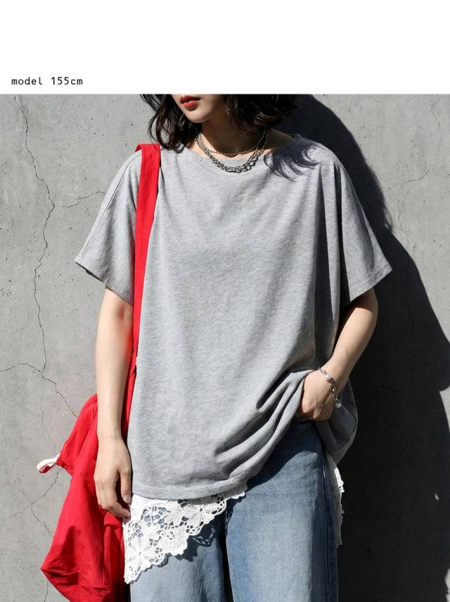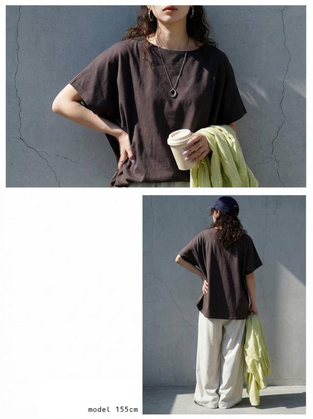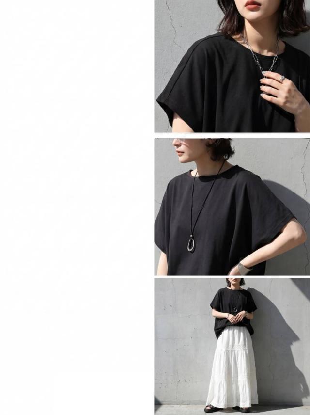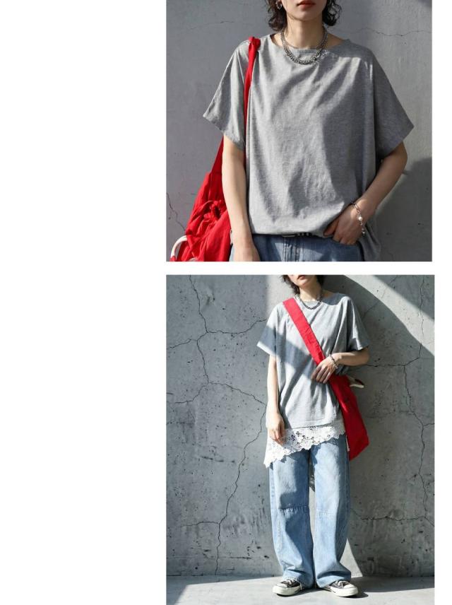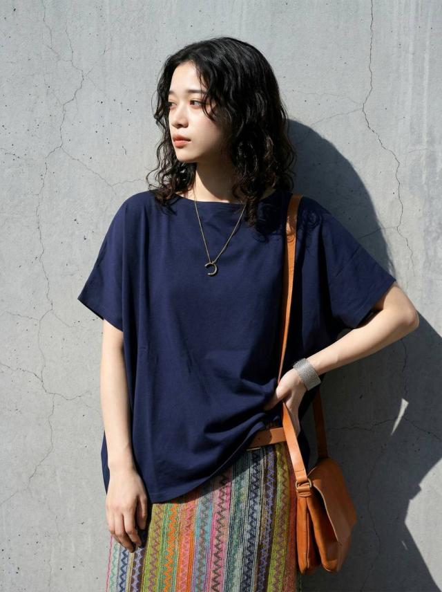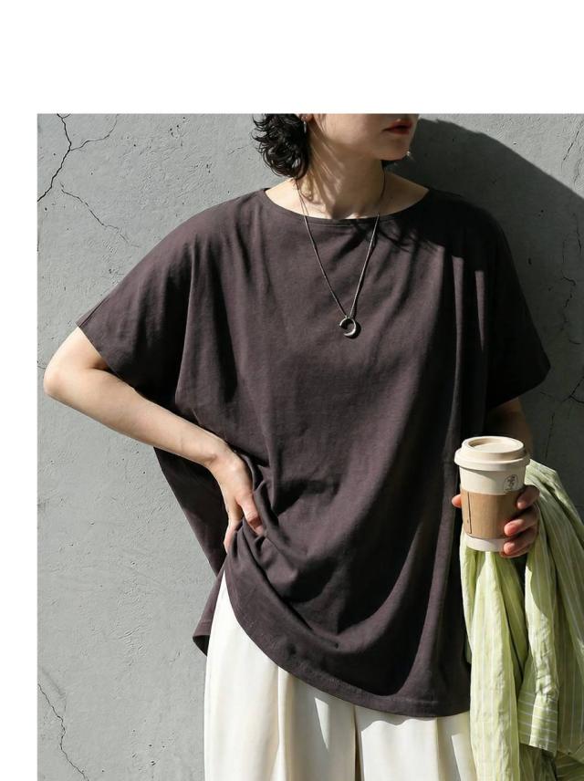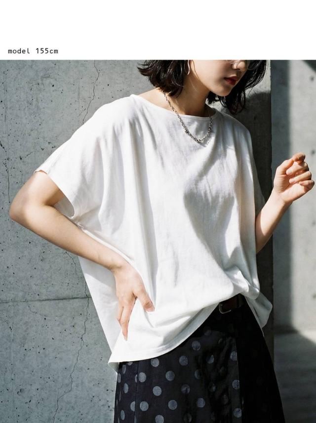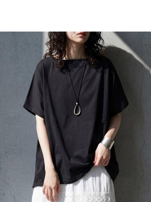 na-00531 半袖Tシャツ 汗ジミ 防止 ボートネック コットン 快適 半袖トップス ゆったり 体型カバー シルエット 軽やか 通気性 高見え 大人カジュアル モード シンプル デイリー