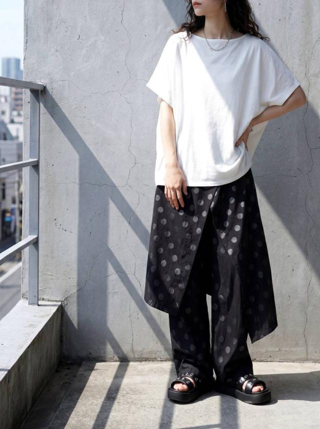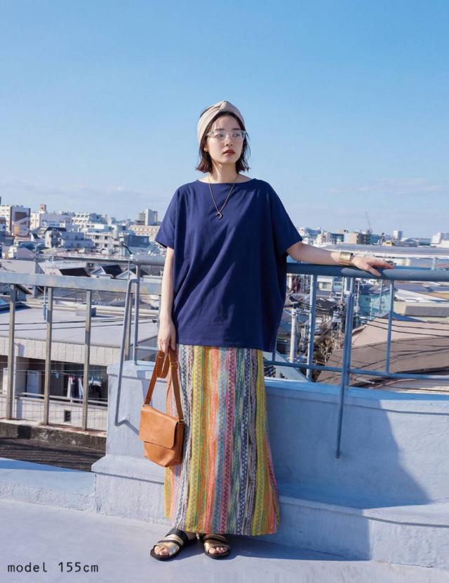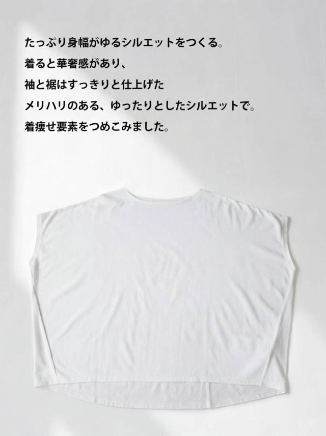 ゆったりとしたシルエットで体型カバーを叶えつつ、袖丈は半袖で軽やかに仕上げました。