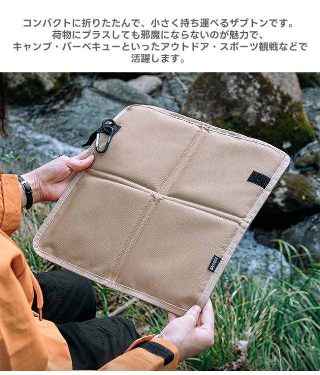 コンパクトに折りたたんで、小さく持ち運べるザブトンです。荷物にプラスしても邪魔にならないのが魅力で、キャンプ・バーベキューといったアウトドア・スポーツ観戦などで活躍します。表面に水滴などをサッと弾く撥水加工が施されています。そのため、芝生や地面に直接敷いても安心です。