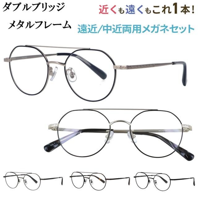 老眼鏡 おしゃれ メンズ レディース 遠近両用 遠近両用メガネ 眼鏡 UVカット クラウンパント ダブルブリッジ メタルフレーム 鼻パッド付き YM-19023 調整可能 遠くも近くも見える シニアグラス 男性 女性 40代 50代 60代 ビジネス カジュアル