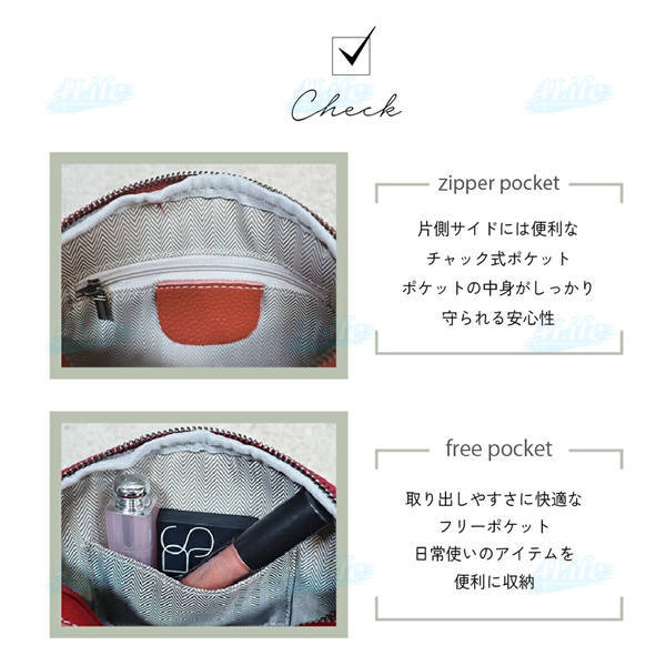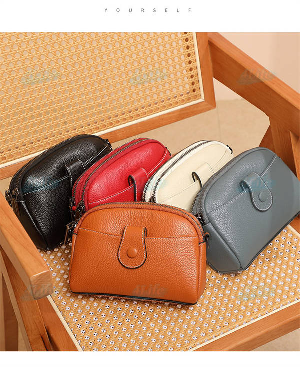 牛本革の質感から漂う高級感は大人な魅力を引き出してくれます。コンパクトサイズなのにWチャックで収納力バツグン。