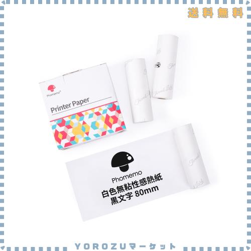 Phomemo 非粘着性80mm幅ホワイトサーマルペーパー プリンター用紙、Phomemo M03/M04ASサーマルプリンター対応、黒文字、3ロール、ノート、リスト、写真に最適です。