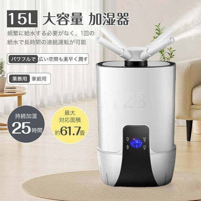 加湿器 大容量 15L 超音波式 加湿器 業務用/家庭用 大型 上から給水 最大噴霧量1500ml/h 定湿機能 静音 切タイマー 3段階噴霧量 湿度調整 省エネ リモコン付き 空焚き防止 乾燥対策/花粉症対策 キャスター付 お手入れ簡単 寝室/オフェス/幼稚園/病院/美容院/老人ホーム