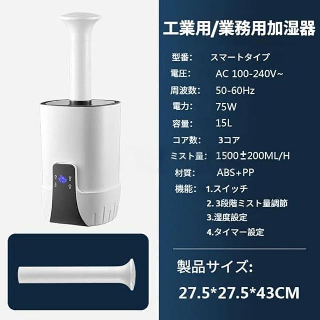 【15L 超大容量加湿器】この業務用加湿器はおしゃれなデザイン性とパワフルな加湿能力を両立しました。長時間連続運転が可能で、頻繁な給水の手間を省けます。工場、倉庫、店舗など多様な場面で安心してご利用いただけます。