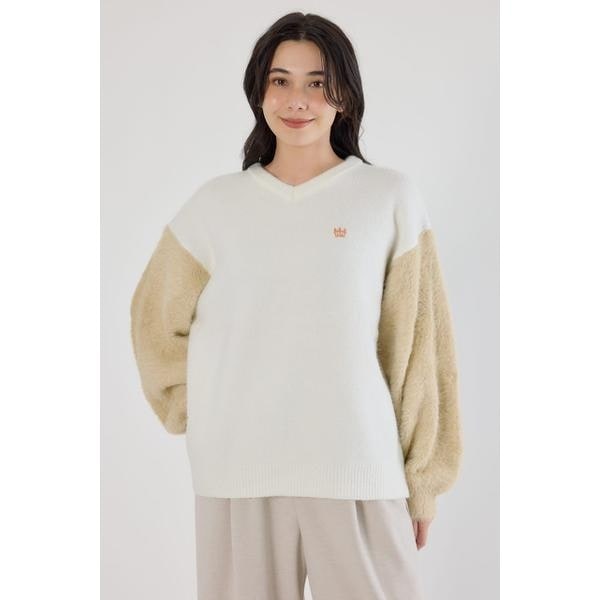 ■ポイント毎年大人気なアームシャギーニットに新色、新柄が登場。身頃には着心地の良い糸、袖はふわふわしたシャギー糸を使用したニットトップスです。シンプルなワンポイント刺繍なので、ボトムを選ばず着用できます。■ディテール各カラーにそれぞれ配色の効いた、ブランドらしいクラウンマークのワンポイントが入っています。■スタイリング無地はどんなボトムとも馴染み、着回し力抜群です。柄はシンプルなボトムを合わせるだけで、主役級コーディネートになります。暗くなりがちな冬のおしゃれをパッと華やかにしてくれます。■生地※ドライクリーニング対応ブークレヤーンなどの意匠糸を使用しているため、素材の特性上、編地表面にネップや糸の浮きが生じる場合がございます。また、着用を重ねることで毛玉や毛羽立ちが見られる場合がございますが、素材特性によるもので避けられません。あらかじめご了承ください。ピリングなどが発生した場合は、はさみなどできれいにカットしてください。ナイロン混のテンションのあるニット商品ですので、ハンガー掛けの際に襟元、袖などが伸びます。サイズ違いの原因にもなりますので、こまめにハンガーから外すなどご注意下さい。■透け感:なし■裏 地:なし■伸縮性:あり■光沢感:ややあり[注意事項]※画像の商品はサンプルです。実際の商品と仕様、加工が若干異なる場合があります。※画像の商品は光の照射や角度、お使いのモニター環境により、実物と色味が異なる場合がございます。※着用、お取り扱いの際は、アテンションタグをご確認ください。