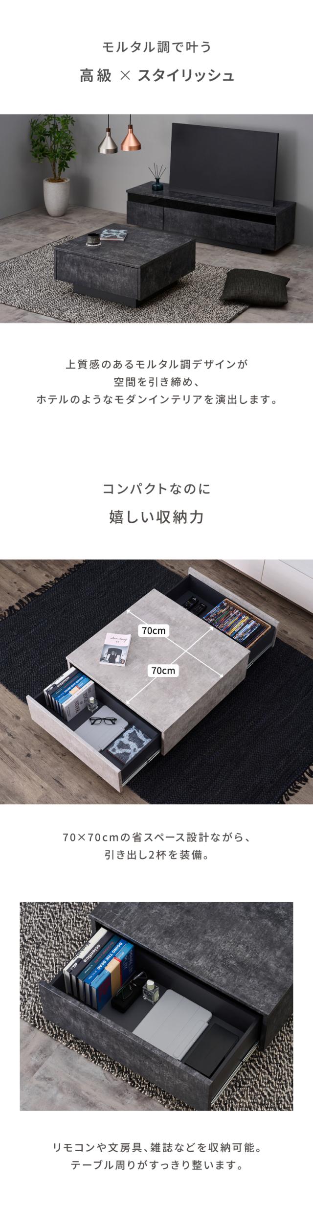 【1/13限定!ポイント10倍!】 センターテーブル 幅70 ローテーブル コンパクト 収納付き 引き出し グレー 家具 キャスター 移動 おしゃれ 一人暮らし 家族 リビング 家具 インテリア インダストリアル ISSEIKI GRAVA