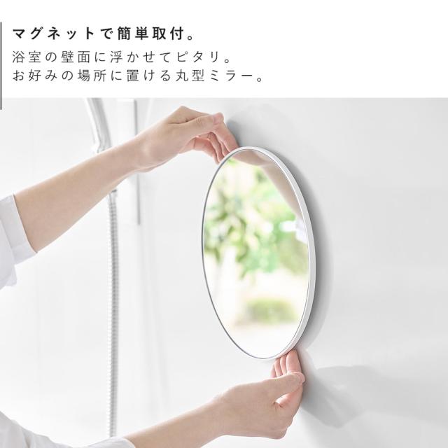 マグネットバスルームミラー タワー 丸型 23cm 山崎実業 tower マグネットミラー 鏡 お風呂 浴室鏡 曇り止め マグネット バスルーム おしゃれ モノトーン ホワイト ブラック 10175 10176