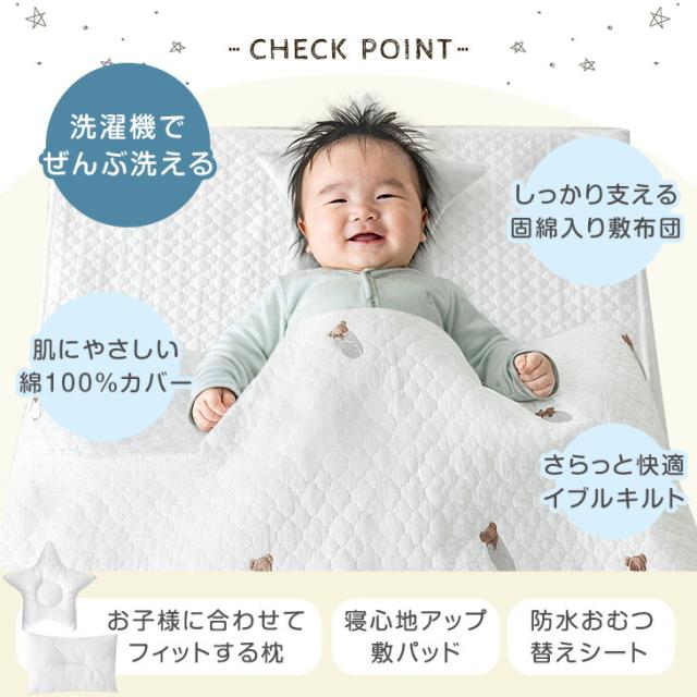 洗濯機で全部洗える ベビー布団 5点セット 綿100% 70×120cm 洗える 敷布団 ベビーふとん セット ふとんセット お昼寝布団 お昼寝マット 布団 ふとん マット 防水 パッド カバー 赤ちゃん 子供 保育園 幼稚園 軽量 折り畳み おしゃれ