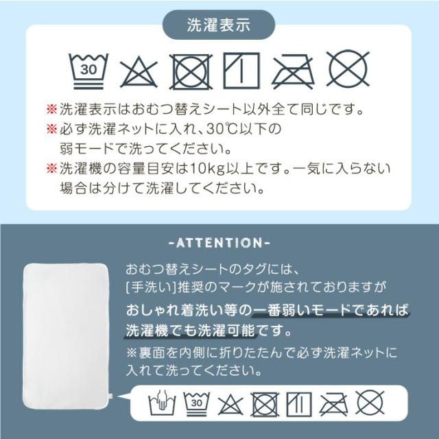 ※おむつ替えシートはおしゃれ着等の一番弱いモードで洗濯してください。