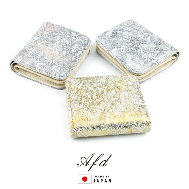 二つ折り財布 レディース 小銭入れあり 日本製 焼き箔 小さめ ミニ財布 ボックス型小銭入れ レザー 本革 粋 和モダン シック 箔 ゴールド シルバー クラッキング 伝統工芸 京都 侘び寂び Afd Anti-Forme Design アンチフォルムデザイン