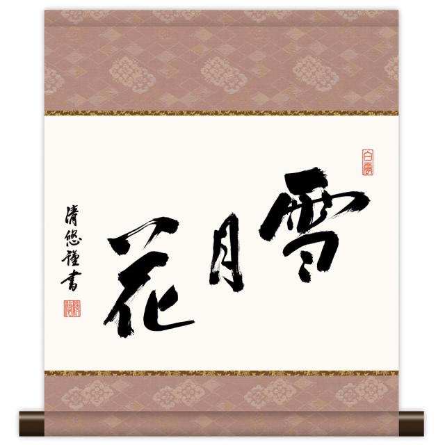 和風モダン掛 現代日本画 墨蹟 [雪月花] 吉田清悠 新絹本 [KM3R5-011] 工芸美術画