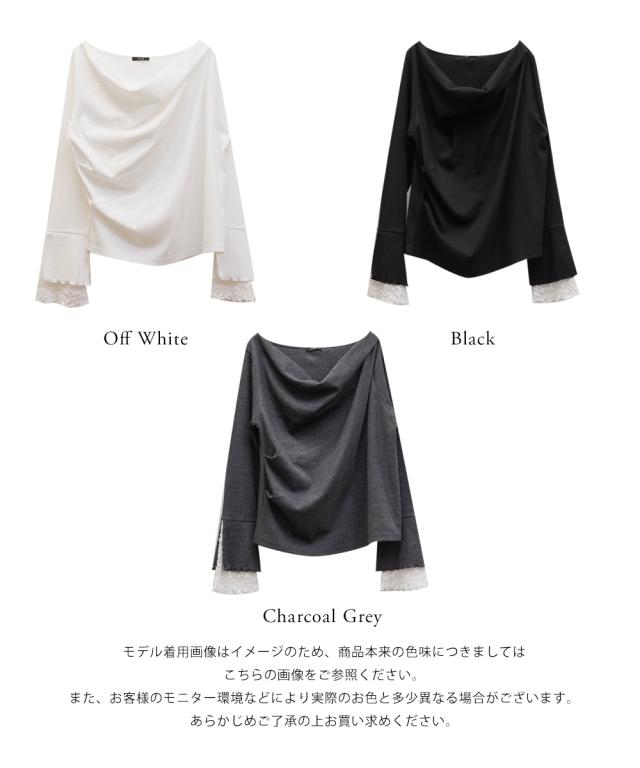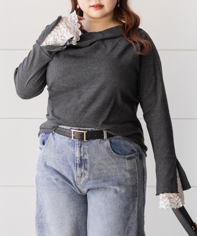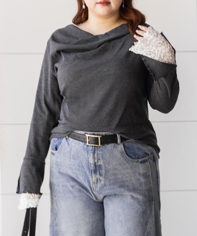 大きいサイズ/レディース/LL/3L/4L/CLETTEオリジナル袖レースドレープネックプルオーバー